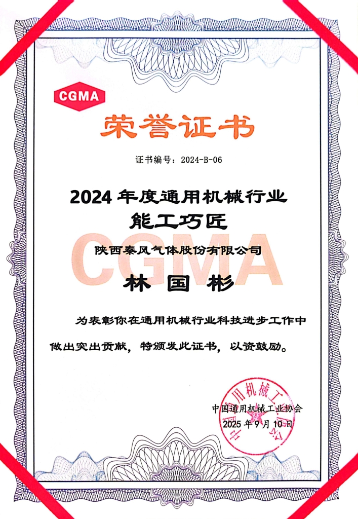 本次大会隆重表彰2024年度行业“能工巧匠”,扬州秦风气体林国彬以精湛技艺、精益求精的工匠精神,在平凡岗位上成就非凡,成为秦风气体高技能人才队伍的优秀代表。